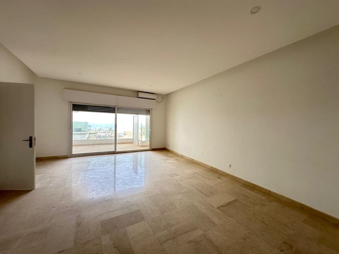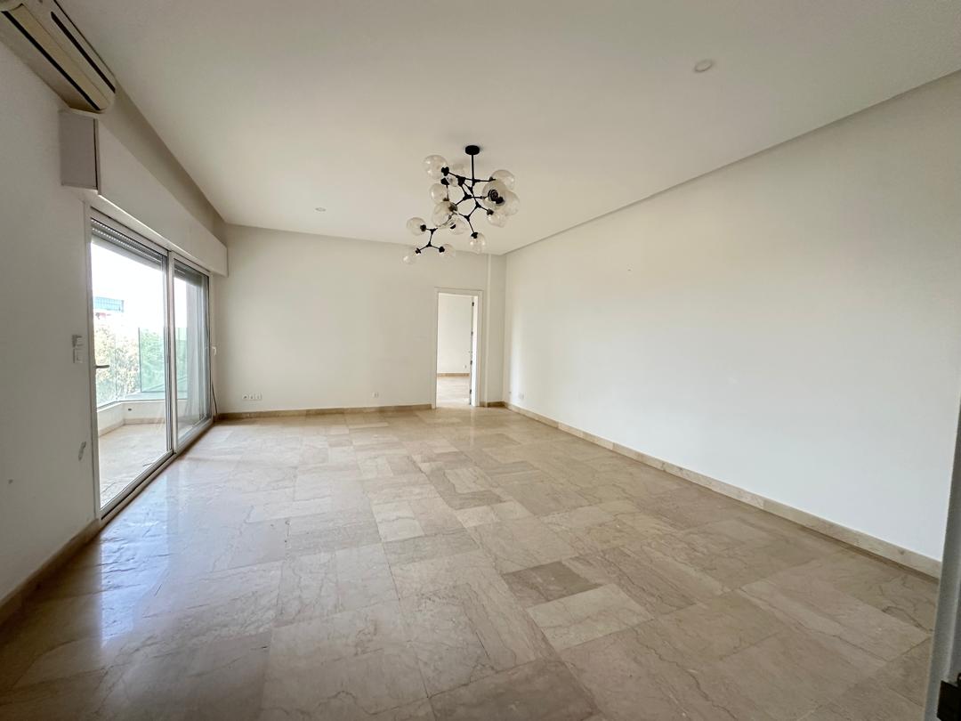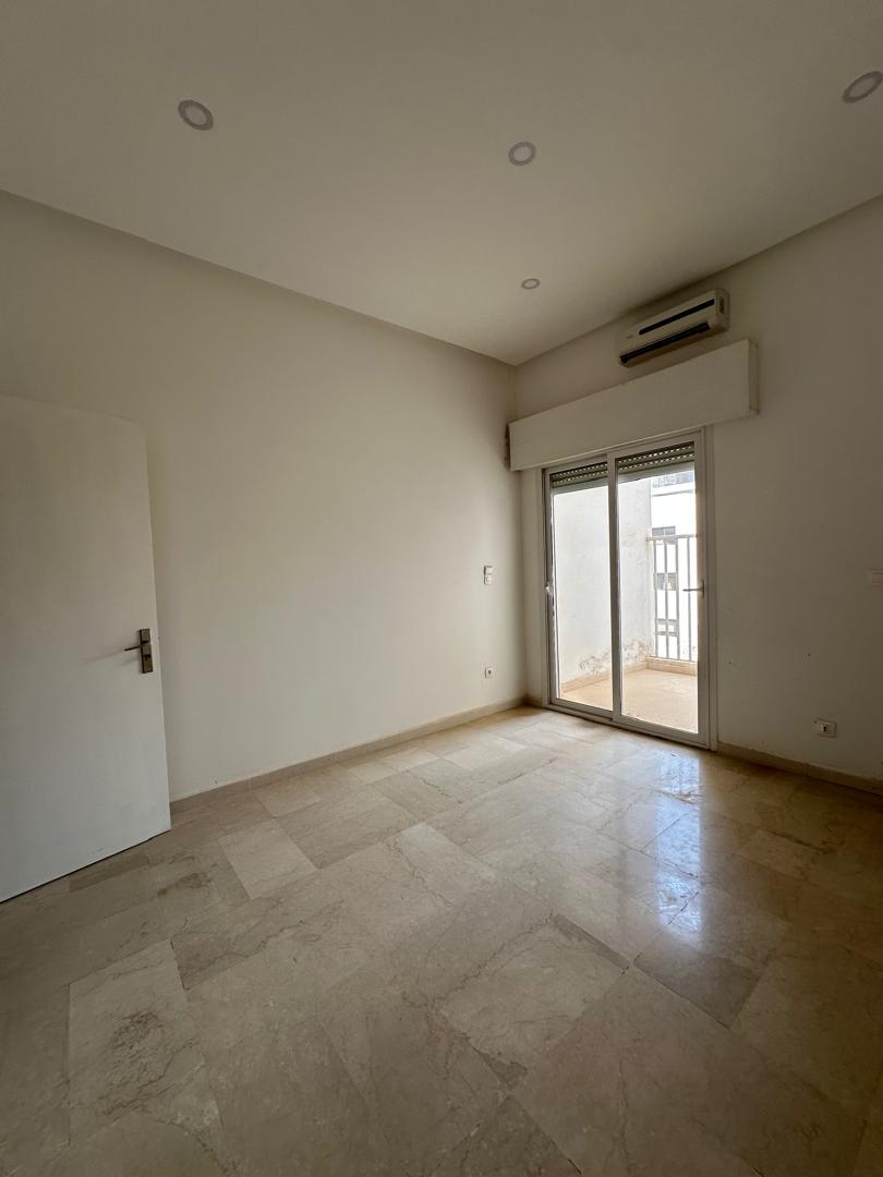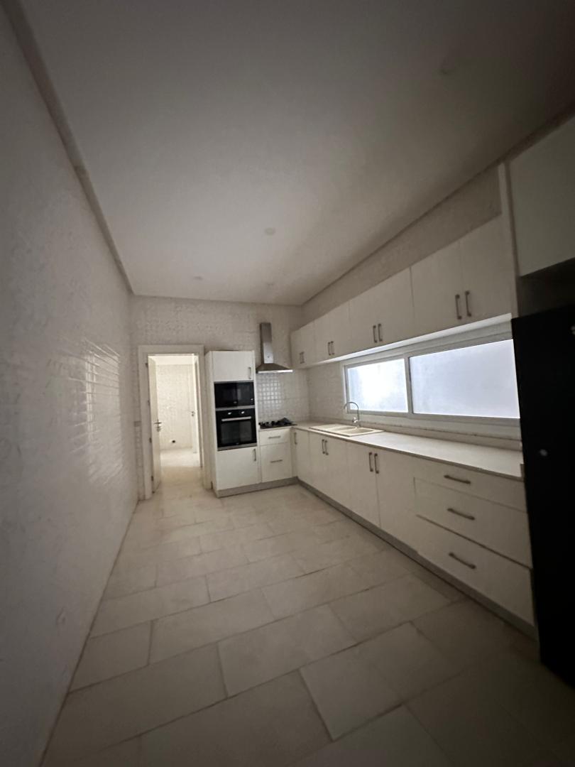 Appartement au troisième étage à louer sur la route du King Fahd, avec une superficie de 311 m2 avec 4 chambres chacune autonomes en salle d’eau, un dressing dans la suite parentale, une cuisine équipée, une dépendance domestique avec la buanderie, un salon spacieux donnant sur un balcon