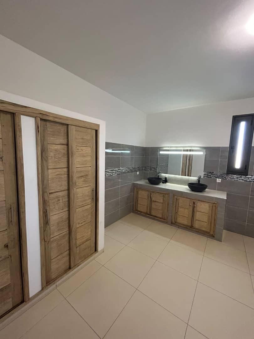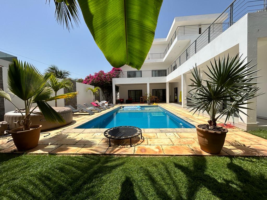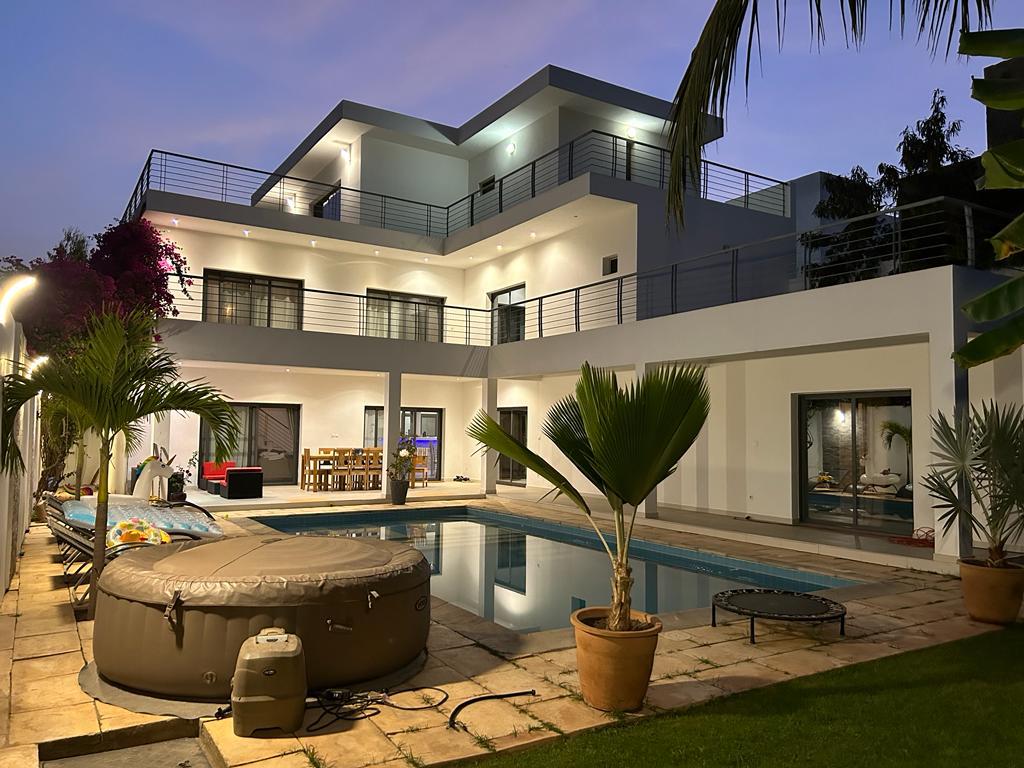 À vendre, superbe villa moderne de 600 m² située à Ngaparou, dans un quartier résidentiel calme et très prisé. À seulement quelques pas de la 4ème position de la plage, cette propriété offre un cadre de vie privilégié avec une belle vue sur mer.