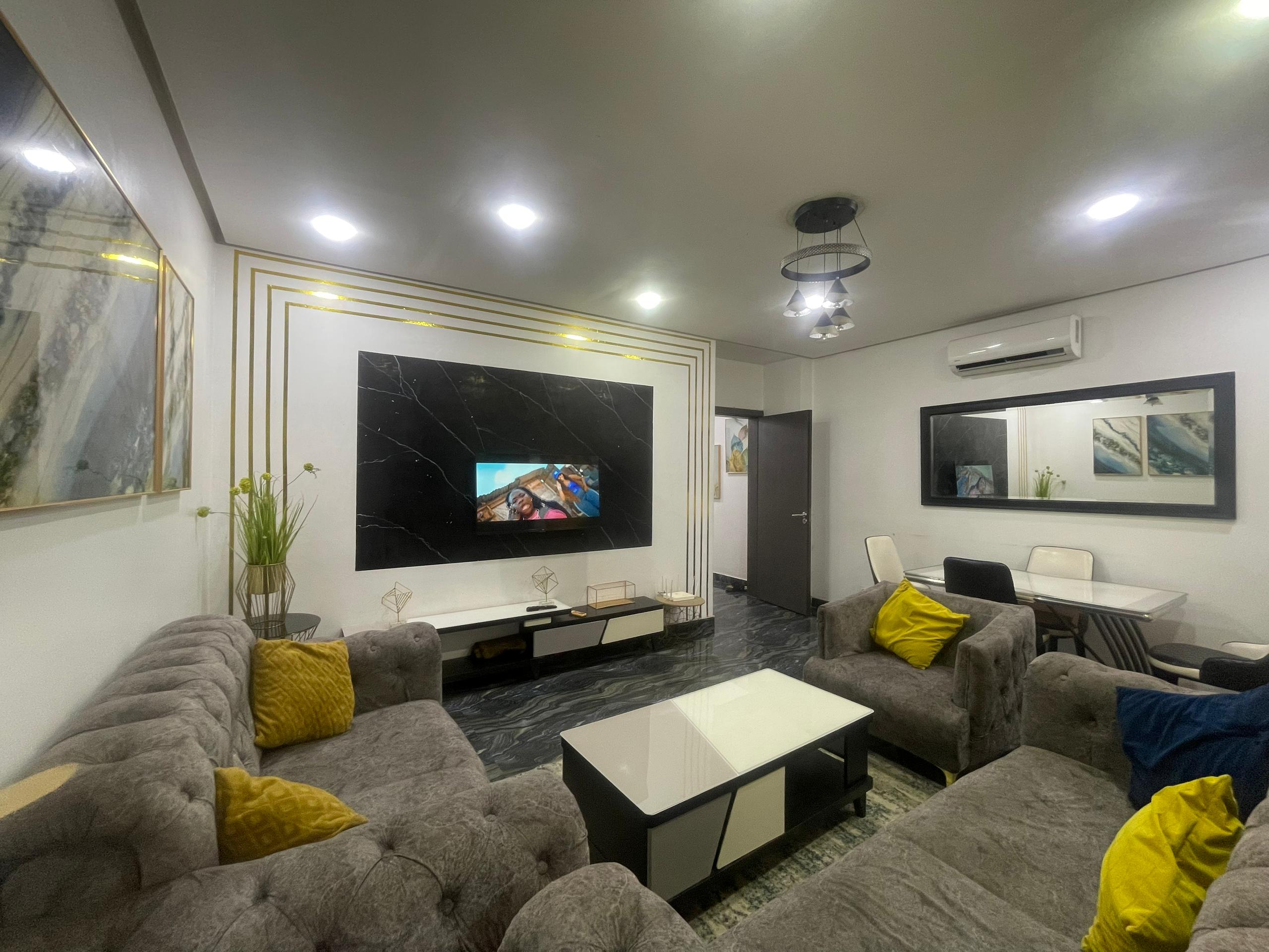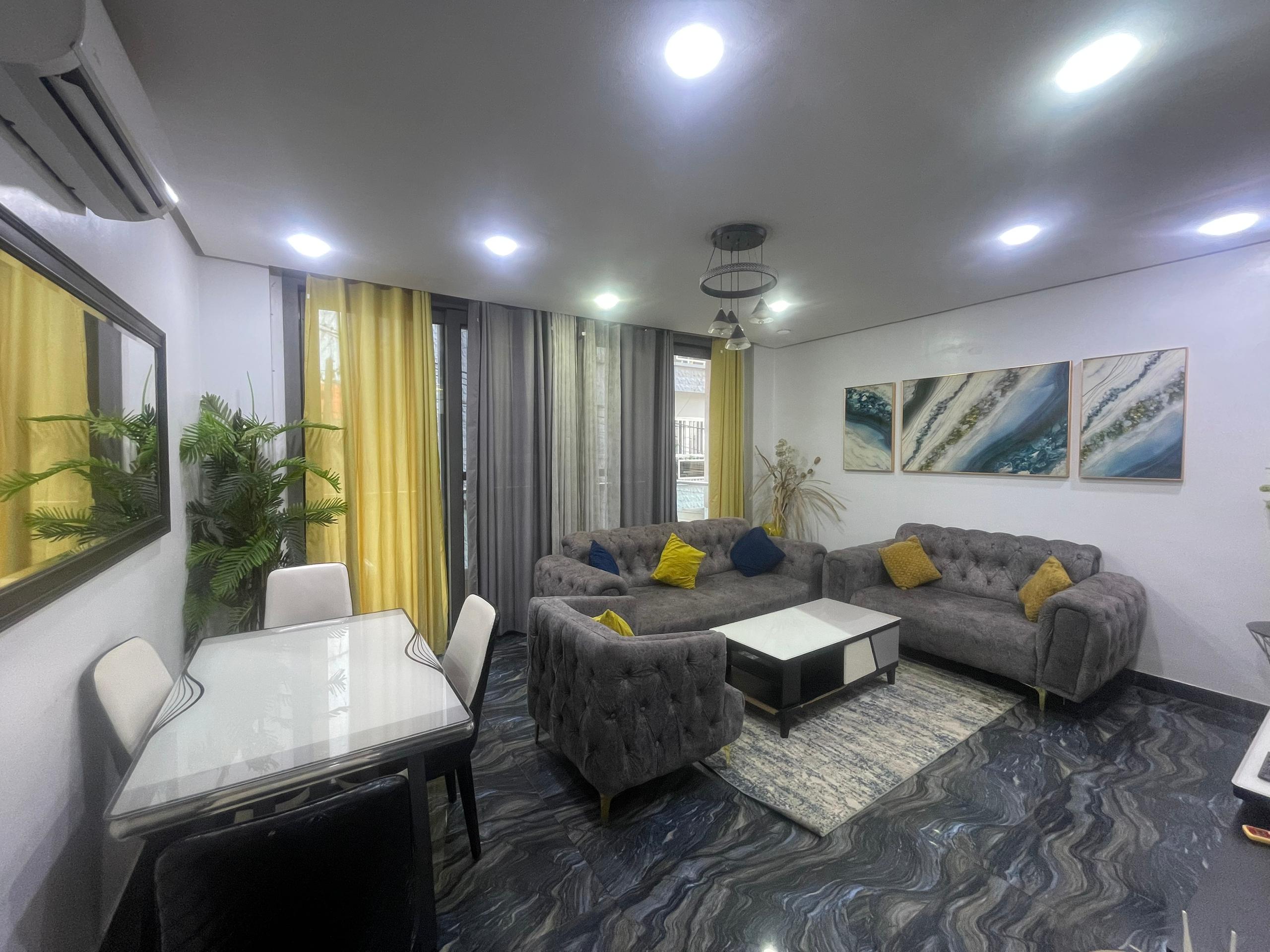 Joli appartement de 110m2 à vendre au 1er étage à CICES FOIRE il composé de 2 chambres chacune avec sde 1 salon avec balcon , 1 cuisine entièrement équipée 1 sde visiteurs 1 espace familial, Commodité : Ascenseur, groupe électrogène gardiennage H24