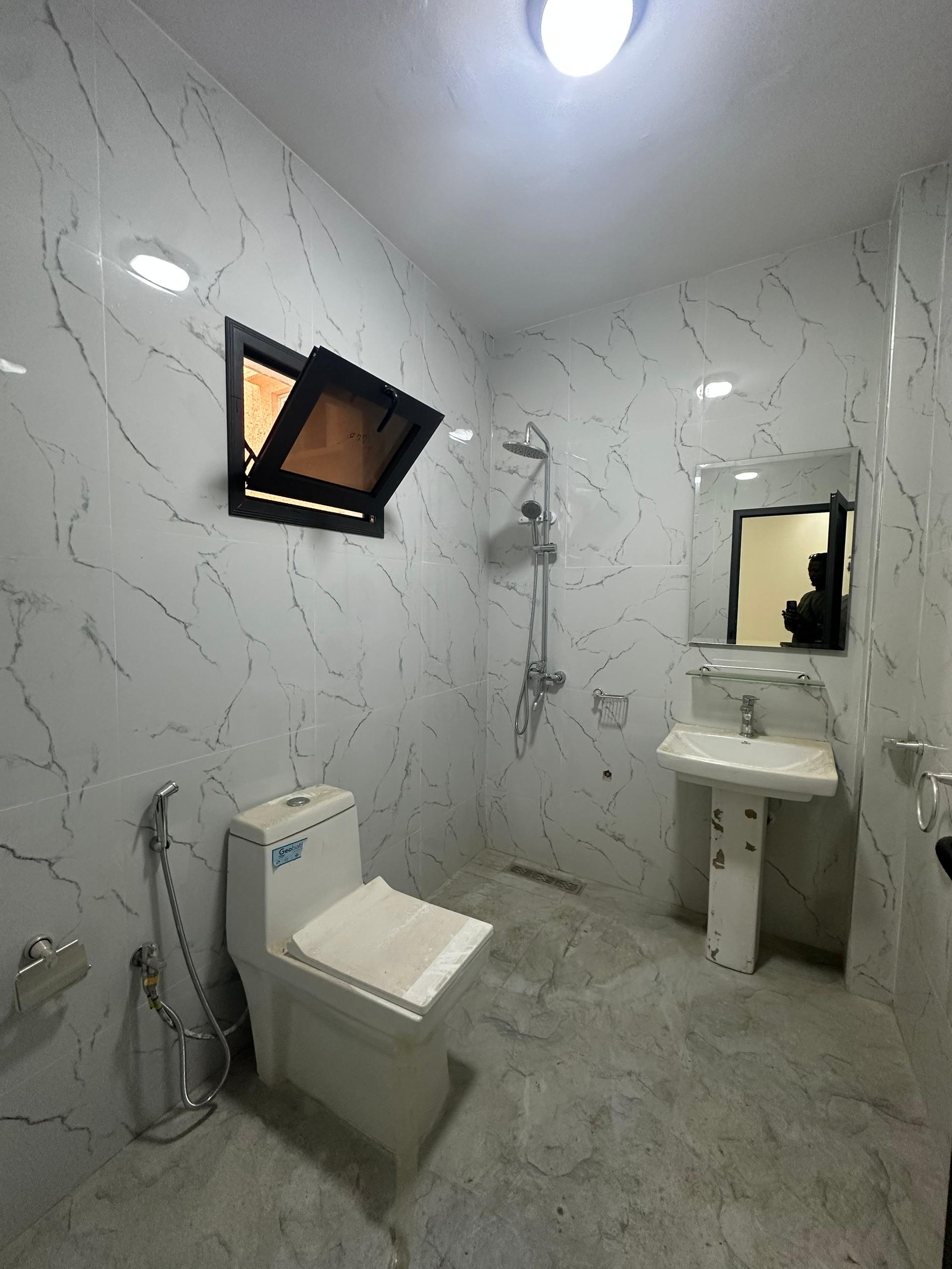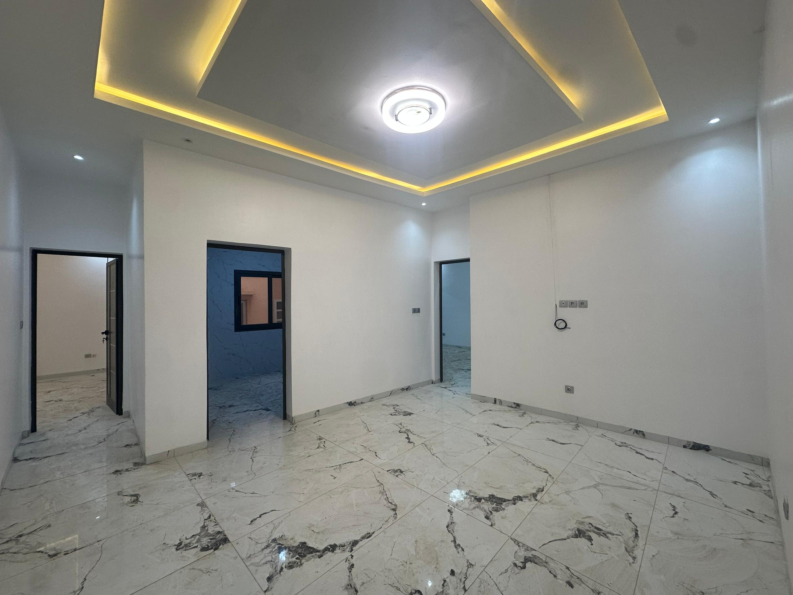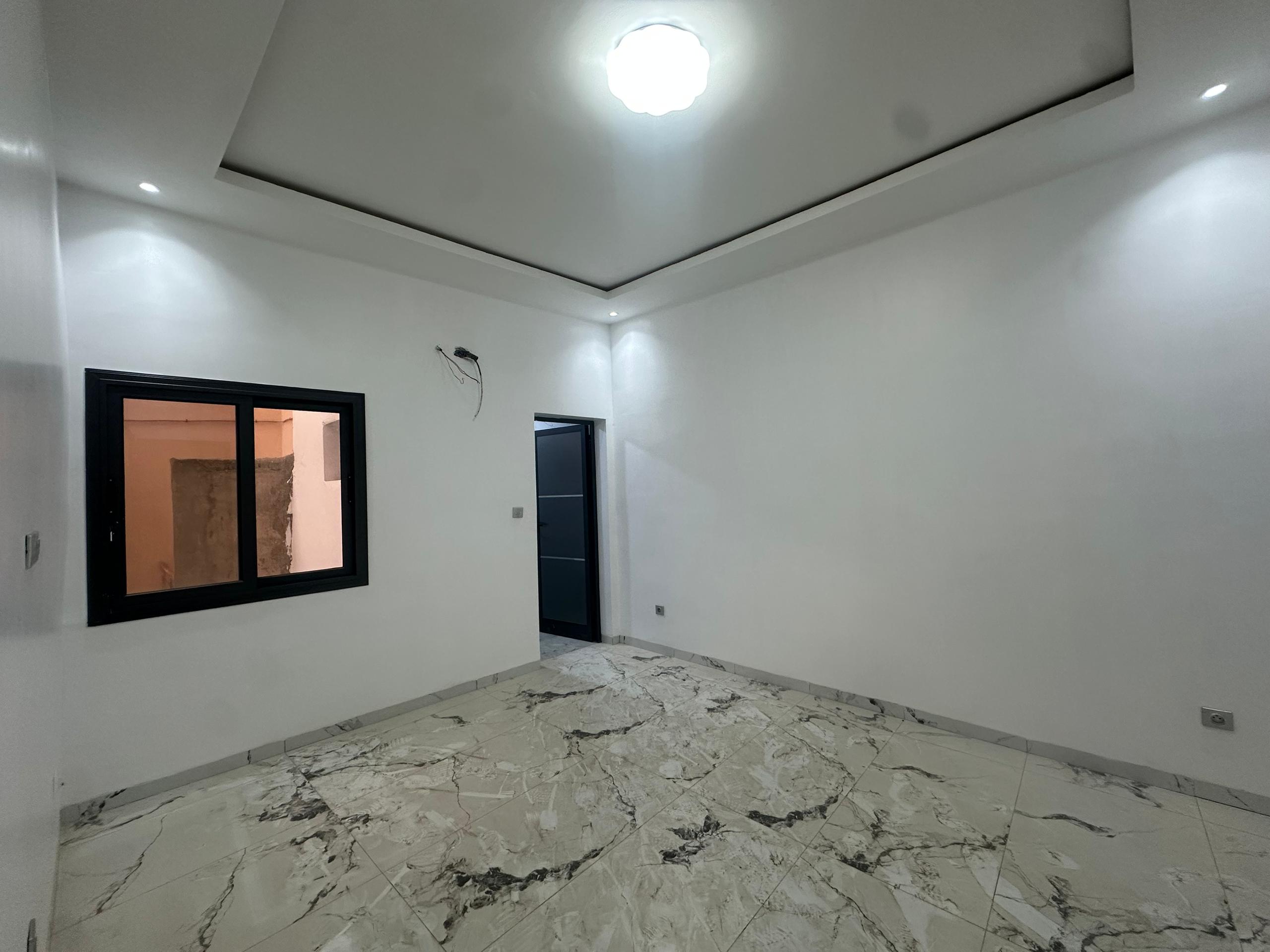 Appartement F3 entrée salon à louer Sicap Foire non loin de la Gendarmerie il est composé de 2 chambres chacune avec 1 salon 1 cuisine avec placard 1 sde visiteurs gardien H24