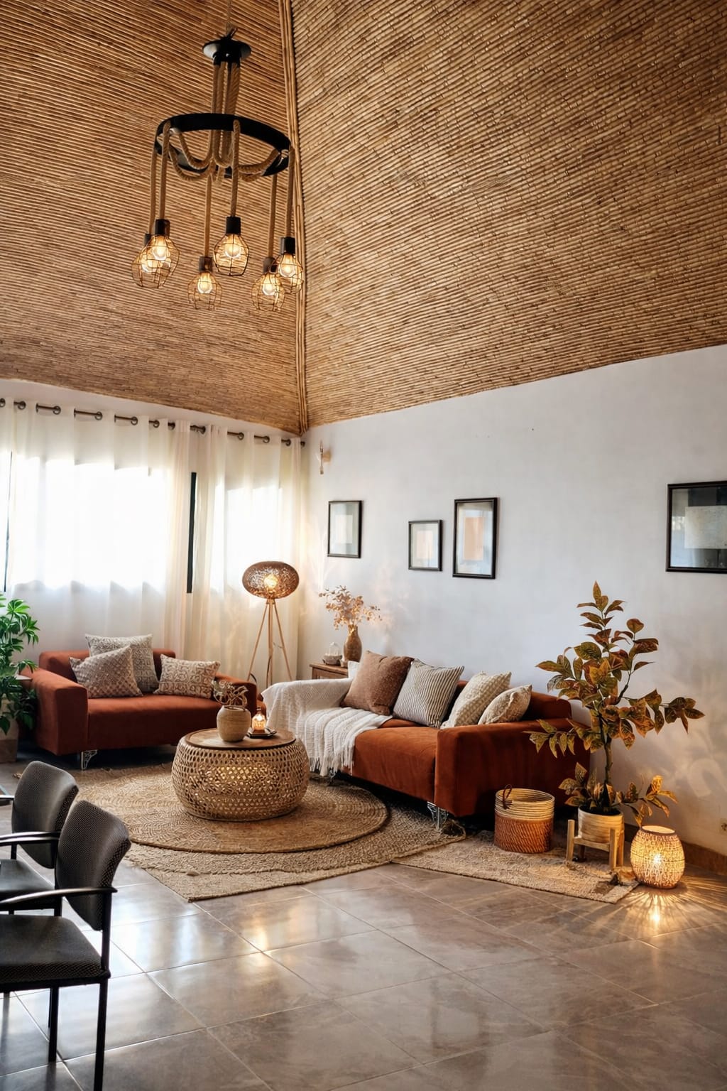 Salon / séjour avec canapé, table basse et espace repas