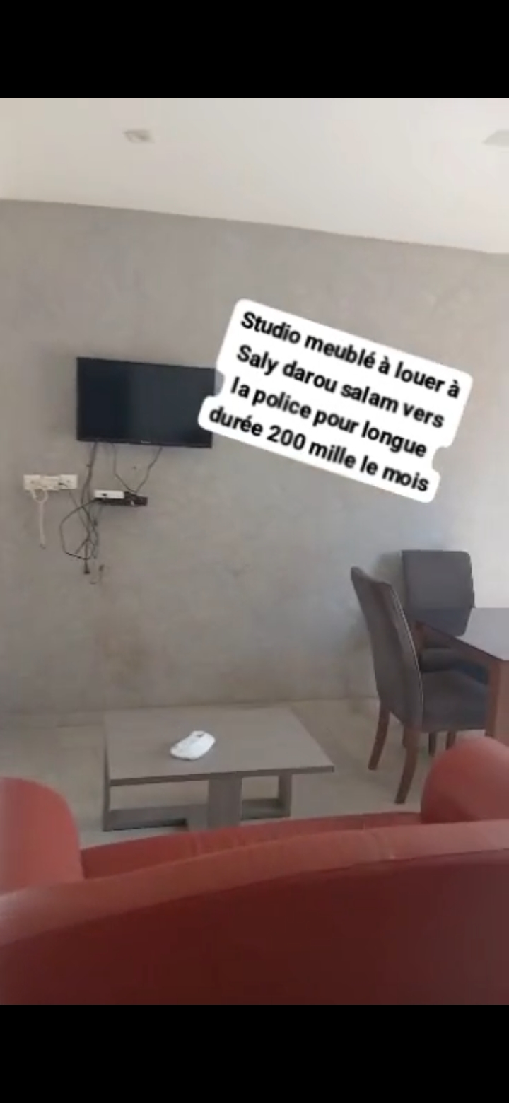 F2 meublé situé à Saly, à proximité immédiate du poste de police, dans une zone facilement accessible et sécurisée.