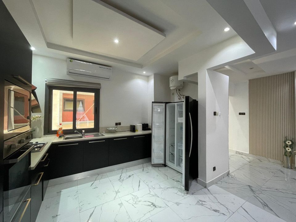 APPARTEMENT MEUBLÉ F3 À LOUER POINT E Appartement F3 au 3eme étage entièrement climatisé à louer Point E il est composé de 2 chambres chacune avec sde 1 sde visiteur -cuisine équipée – buanderie 1 salon avec table à manger et espace familiale -gardiennage H24-parking-ascenseur Nuitée 70 000F CFA hors électricité