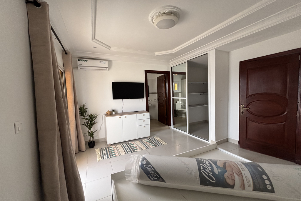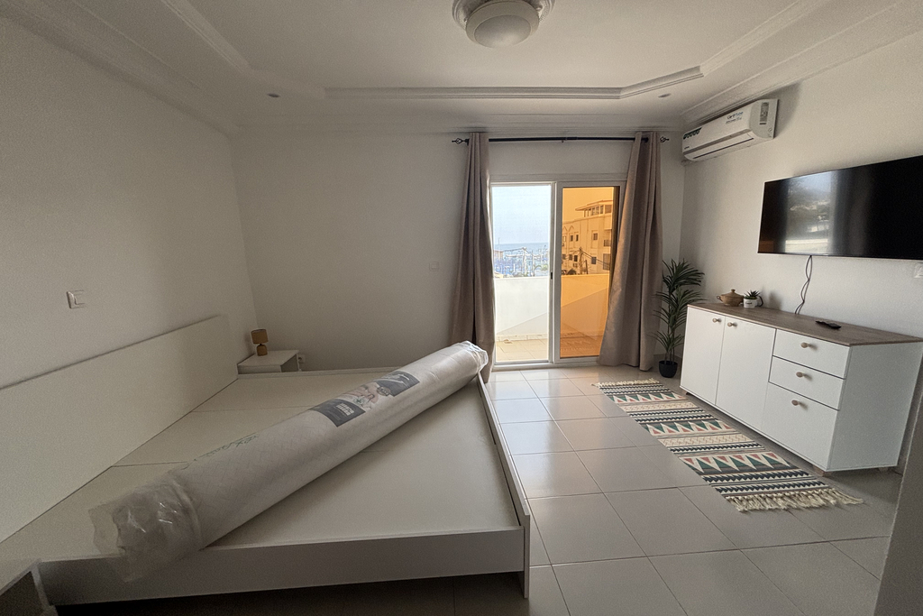 Spacieux 3 chambres meublé sur la Corniche des Almadies, combinant confort et localisation idéale. Vue mer, piscine, ascenseur, gardiennage 24/7, concierge et groupe électrogène.