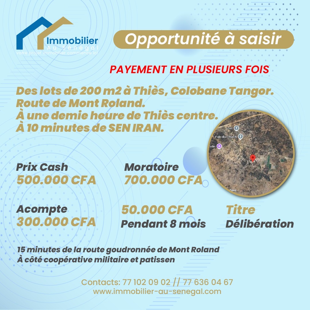 Des lots de 200 mètres carrés à vendre à Thiès colobane tangor