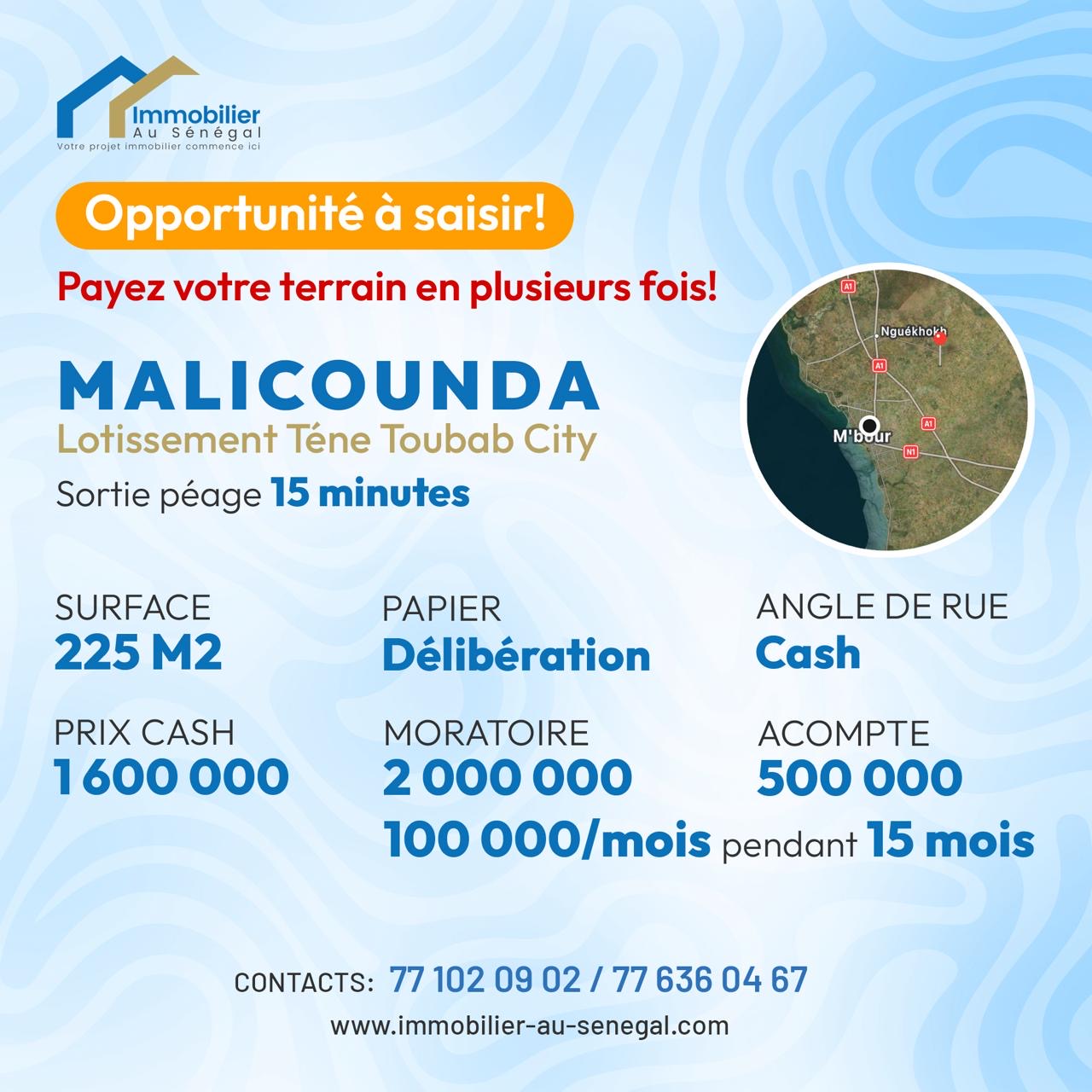 Terrains de 225 m2 à vendre à Malicounda Sénégal