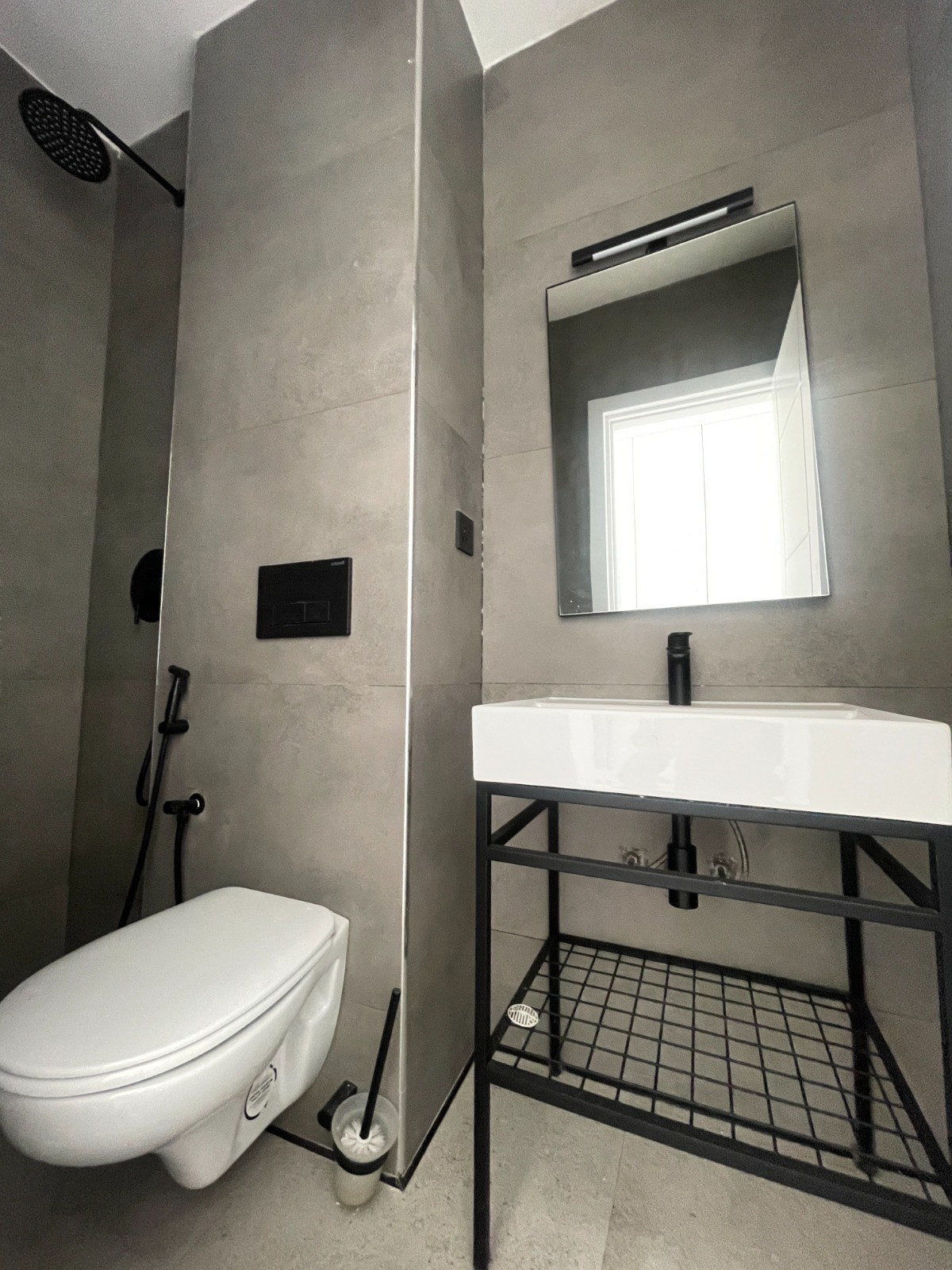 -Choix de materiaux noble bois et finition salle de bain avec de sanitaire modernes.
