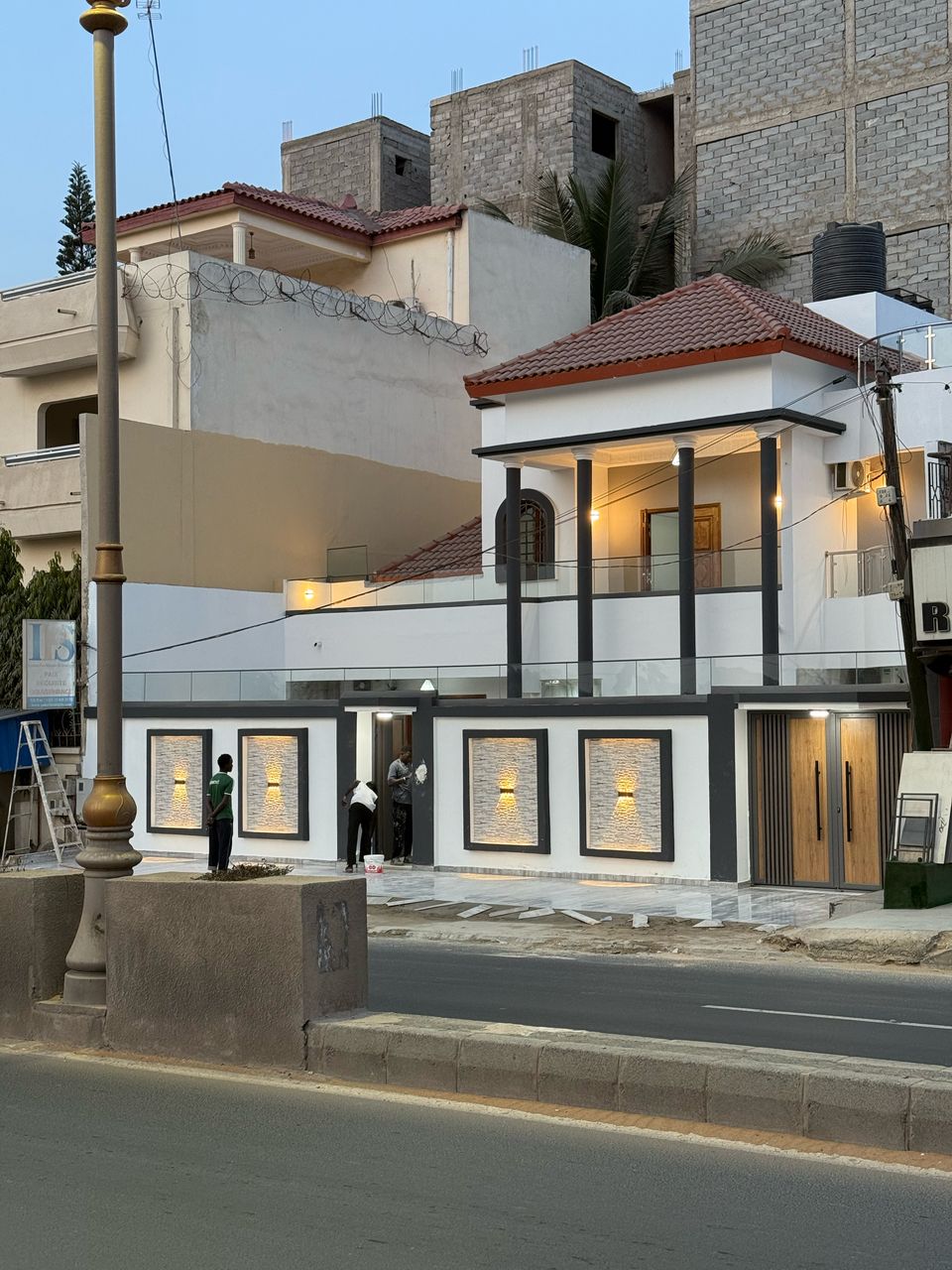 Virage magnifique villa à louer 5 chambres salon balcon 5 salles de bains toilettes visiteur chauffe eau climatisation dans toutes les pièces cour avant terrasse double garage prix 2.500.000f cfa / mois