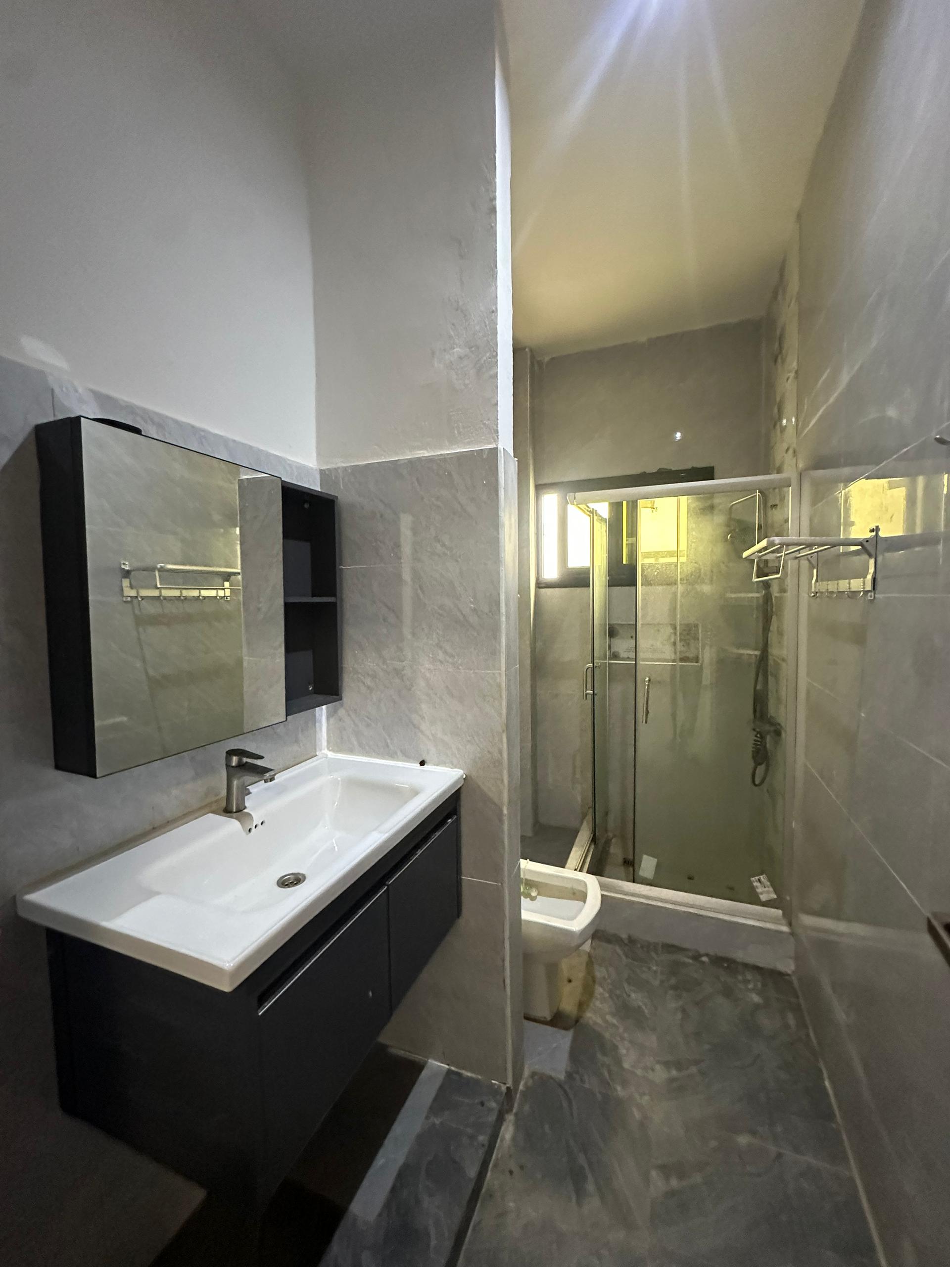 Appartement F3 entièrement climatisé au 1er étage à louer Ngor Almadies Zone de Recasement il est composé de 2 chambres chacune avec sde et rangement 1 entrée salon 1 cuisine entièrement équipée avec 1 sde visiteurs immeuble avec gardiennage H24