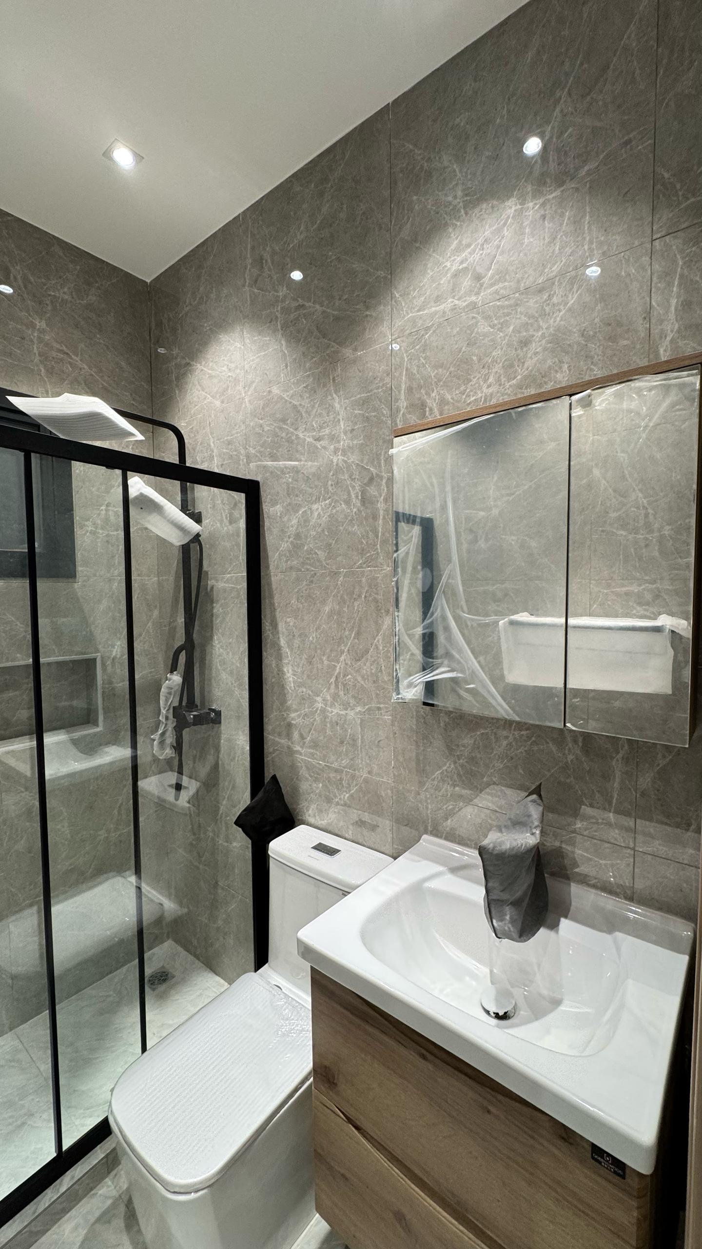 – Une cuisine équipée avec réfrigérateur, micro-ondes, placard
