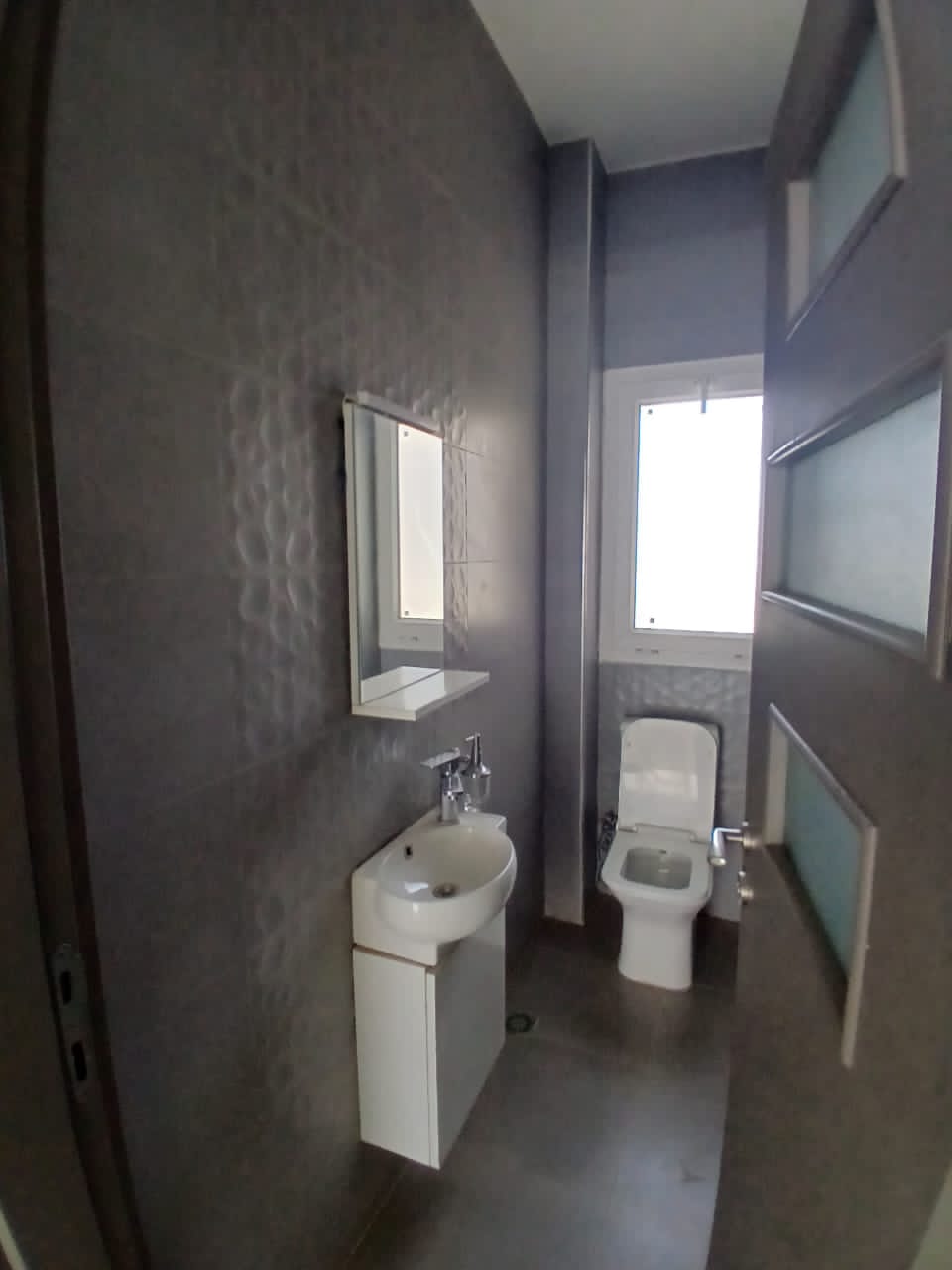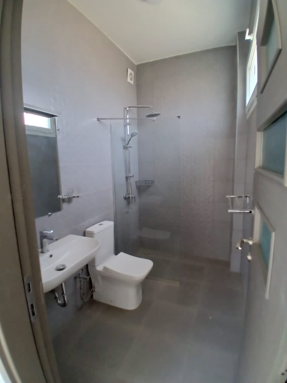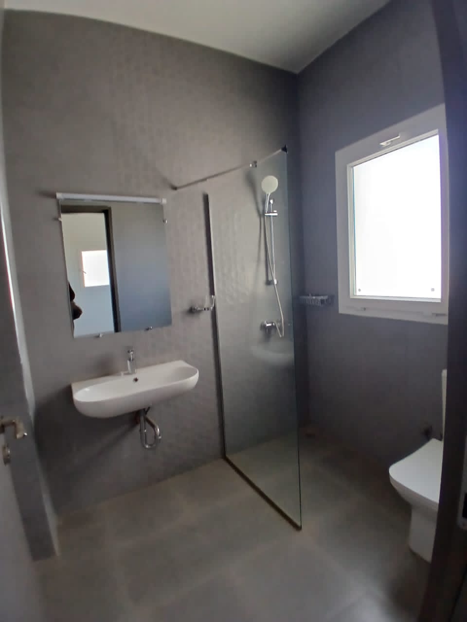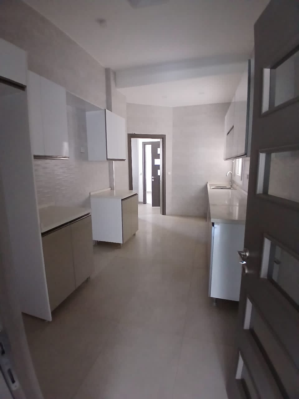 3 chambres avec leurs salles de bains,un très grand Salon avec balcon,une cuisine equipèe avec une buanderie et toilette domestic,et une toilette visiteur dont les commoditès sont parking,ascenseur,gardiennage H24 ,une salle de sport