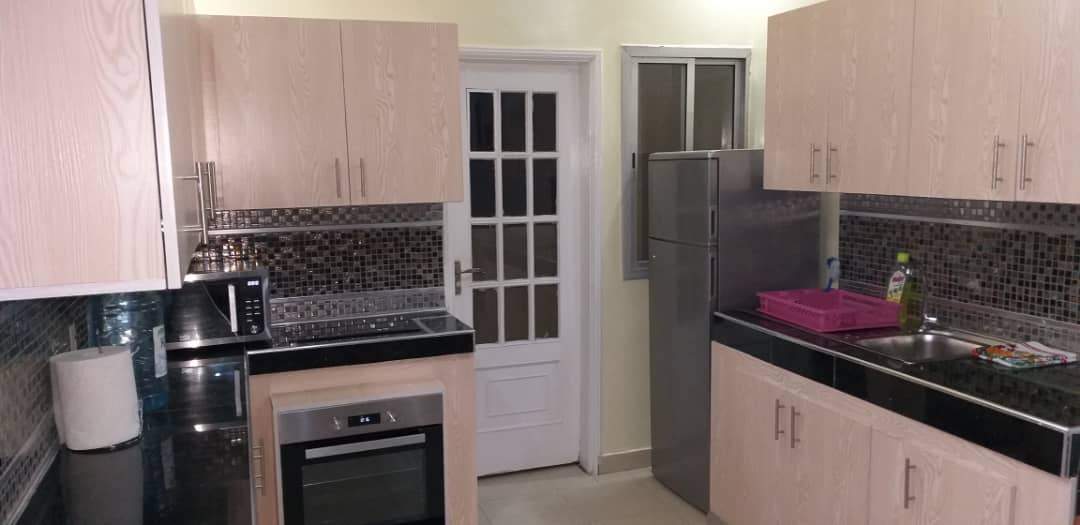 3 chambres, climatisation, salon, cuisine équipée, 2 salles d?eau, chauffe eau, wifi, tv canal, balcon, femme de ménage, gardiennage 24h/24 .