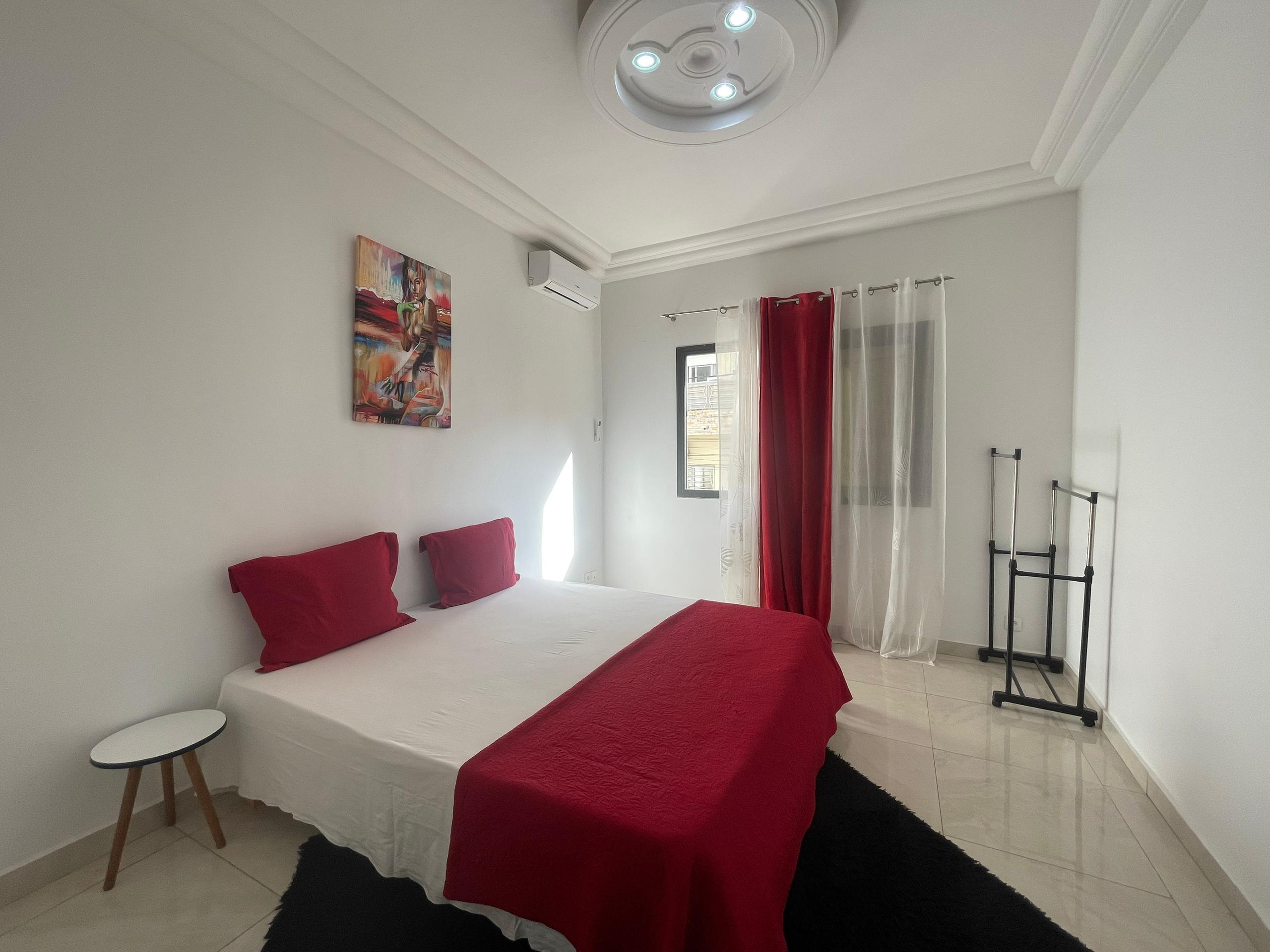 Appartement meublé à louer à Mermoz Batrain non loin de l?Auchan au 1er étagé spacieux de 3 chambres dont 1 avec sdb, 1 salon avec balcon, 1 sde visiteur, 1 cuisine équipée , bien éclairé ,confortable calme et accessible . Idéal pour des vacances en familles dans un environnement propre et serein. Entièrement climatisé. Femme de ménage drap et serviettes fournis-Wifi -TV câblée – Caméra de Surveillance-Gardiennage H24-eau chaude etc? Nuitée :60 000cfa hors électricité