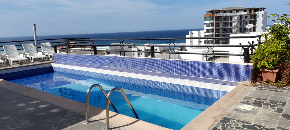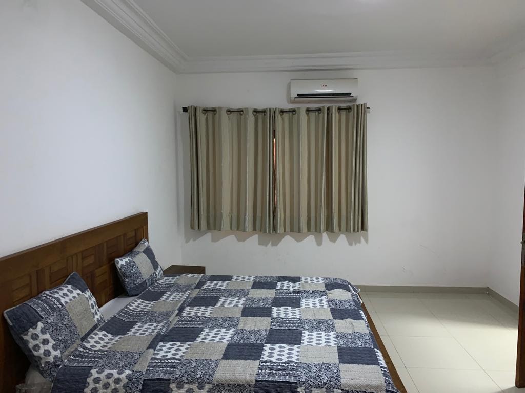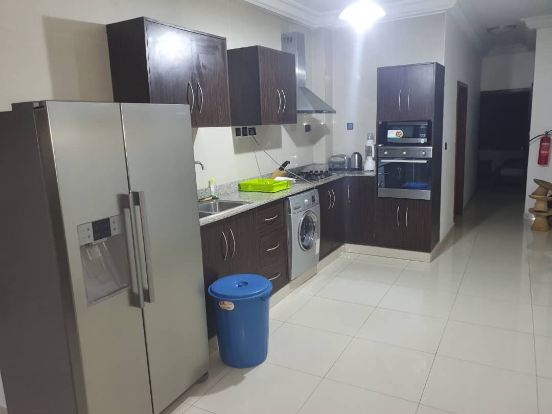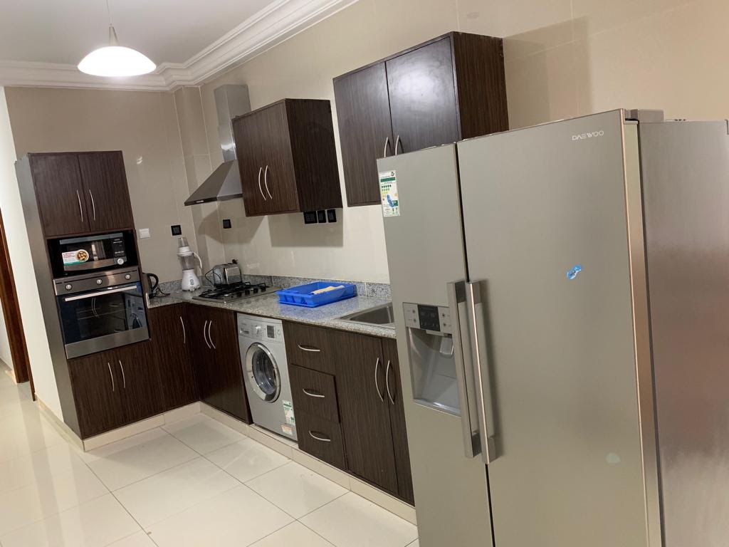 2 chambres, climatisation, salon, cuisine équipée ( four, micro onde, réfrigérateur, etc.), wifi, tv canal, femme de ménage, gardiennage.