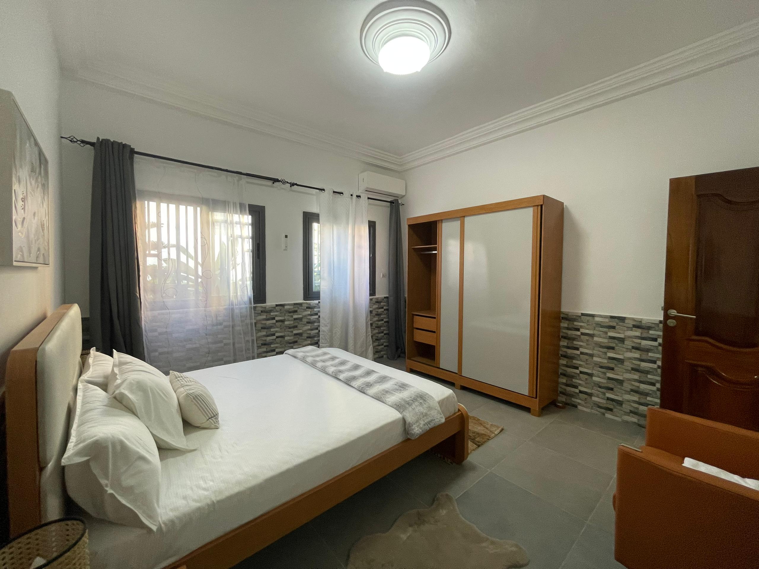APPARTEMENT MEUBLÉ F3 À LOUER MAMELLES Appartement au RDC entièrement climatisé à louer à la Cité Mbackiou Faye composè de 2chambres dont 1 avec sde 1 sde visiteur -cuisine équipée – 1 salon avec table à manger et espace familiale wifi machine à laver femme de ménage -gardiennage H24 Nuitée 50 000F CFA hors électricité