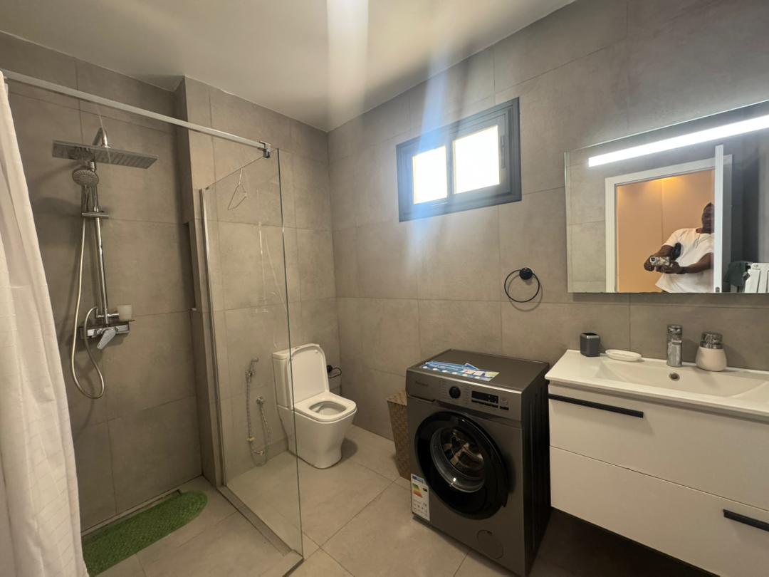 Situé au 9ème étage d’un immeuble récent à Fann Résidence, l’un des adresses les plus recherchées de Dakar, cet appartement meublé offre un cadre de vie rare alliant confort, sécurité et prestations hôtelières.