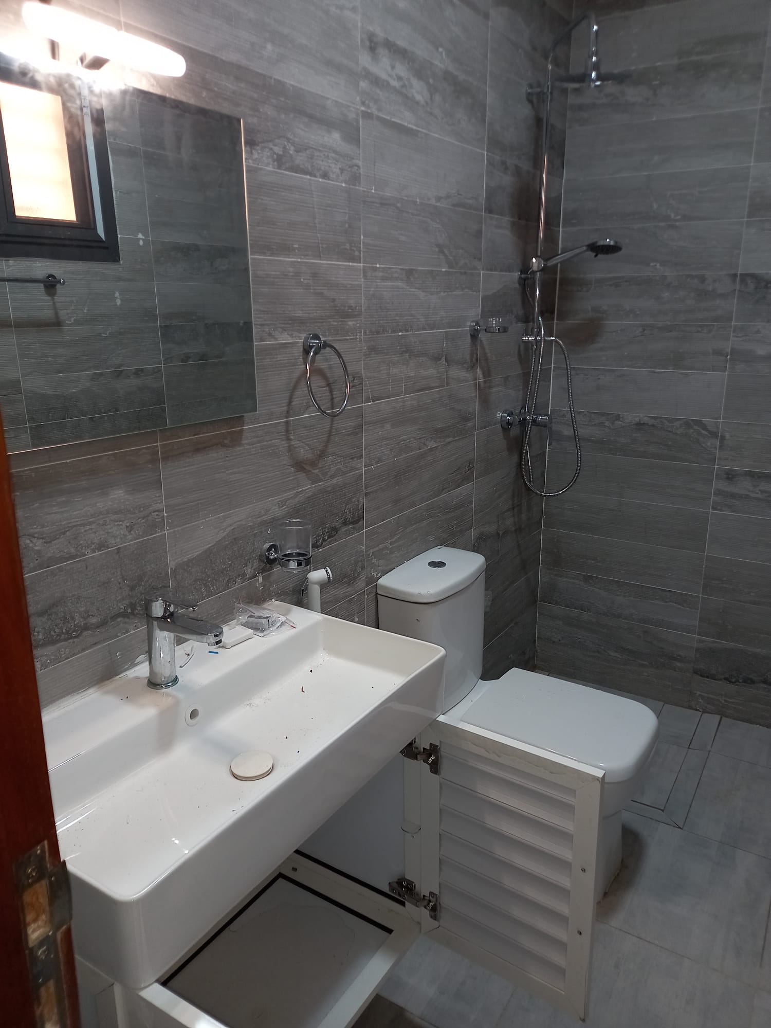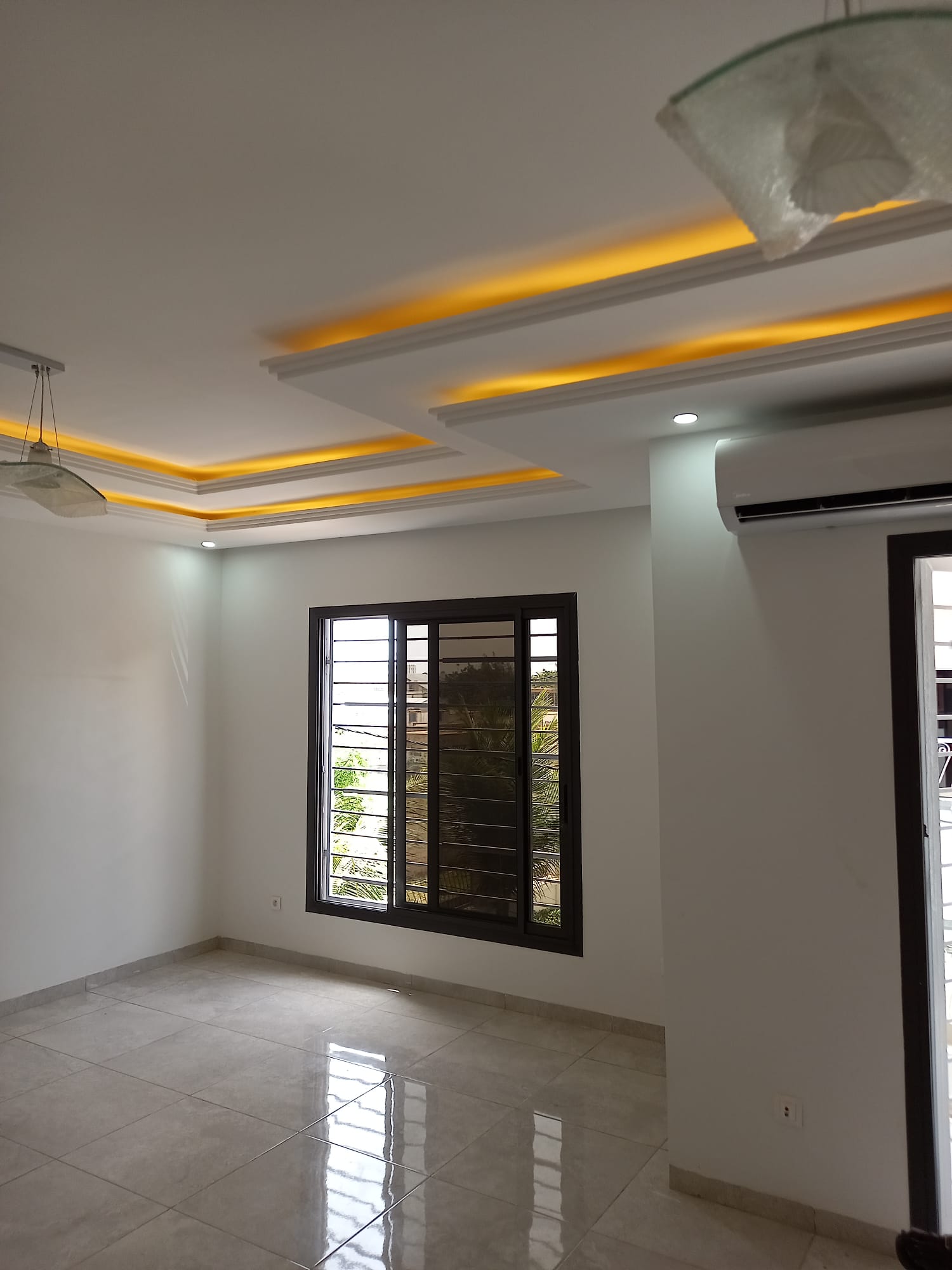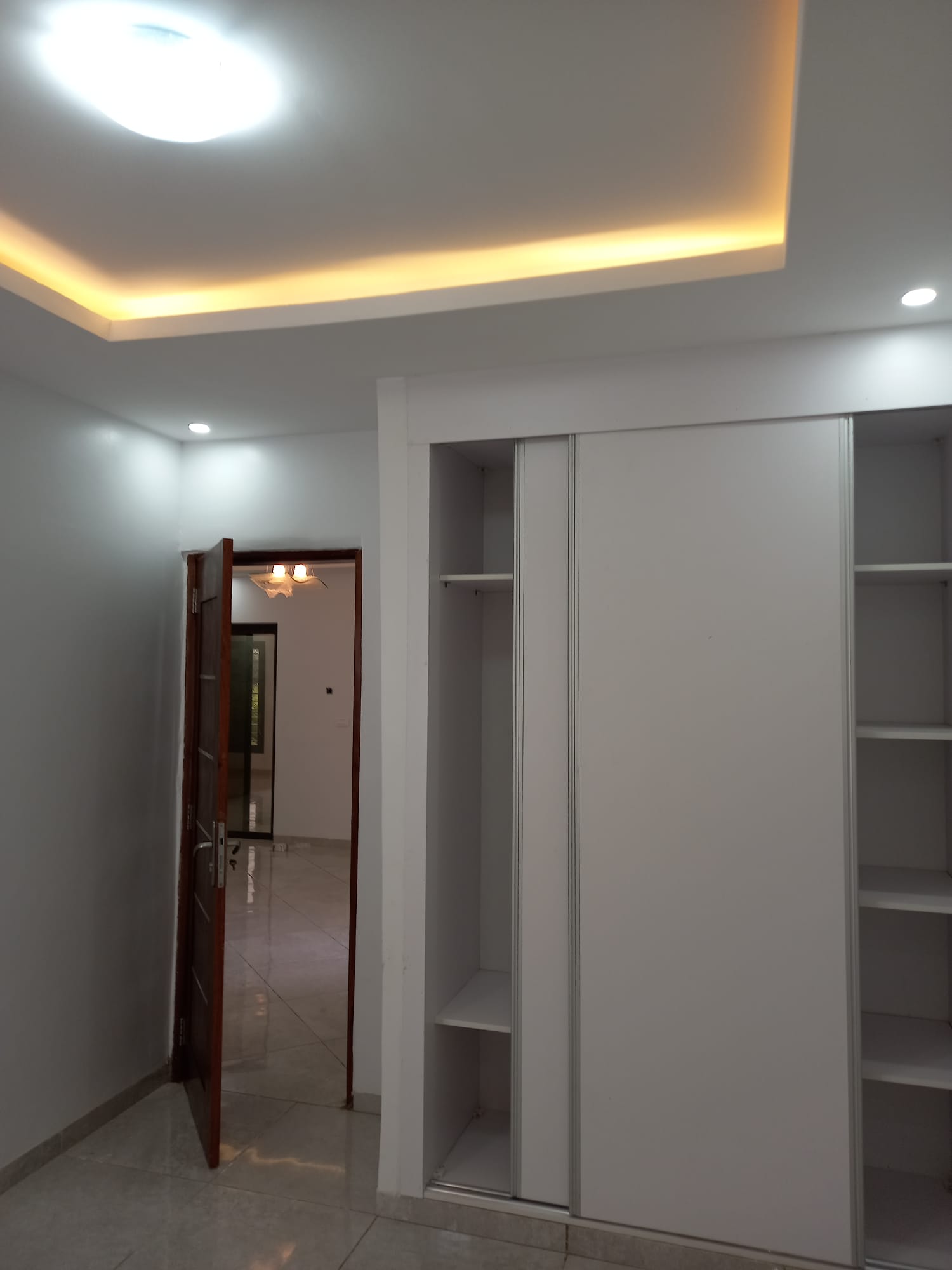Composé de 3 chambres chacune avec sde, grand salon lumineux, toilette visiteurs, une cuisine semi équipée.