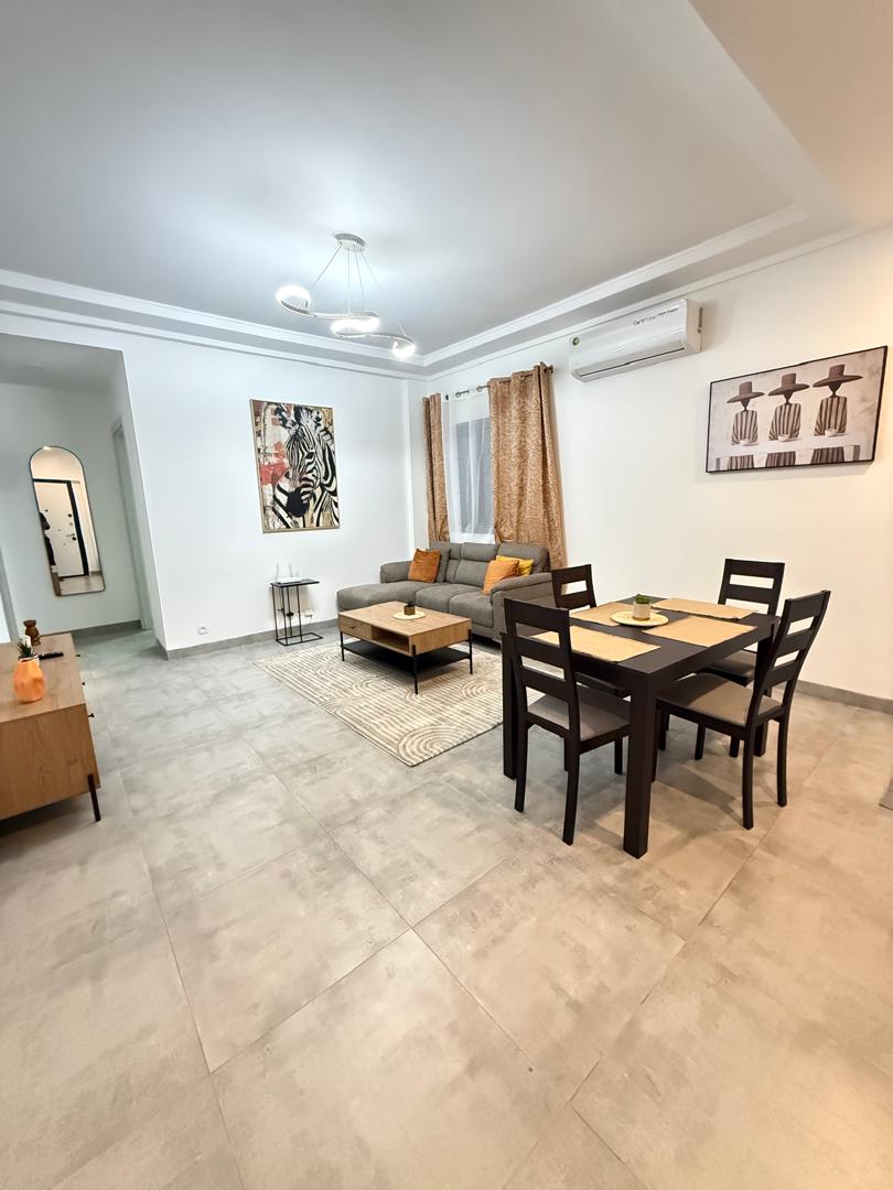 Situé à Amitié 2, un quartier calme, sûr et central, l?appartement bénéficie d?un emplacement pratique : supermarché, BRT, bars et restaurants accessibles à pied (moins de 15 minutes).